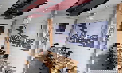 Onze akoestische maatwerkoplossingen blinken uit in geluidsabsorptie, terwijl ze tegelijkertijd een significante visuele upgrade voor uw interieur bieden. Ze zijn uitermate geschikt voor hedendaagse kantoorruimtes met harde oppervlakken en een minimalistisch design, waar zij effectief hinderlijke galm tegengaan en de totale geluidservaring optimaliseren.