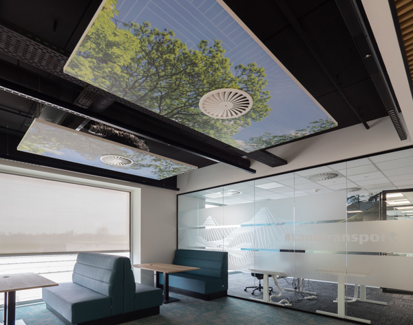 Een wolkenlucht of ander beeld op het plafond? LED verlichte plafondplaten bieden uitkomst